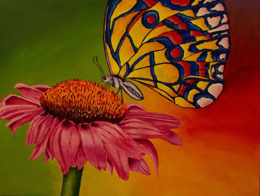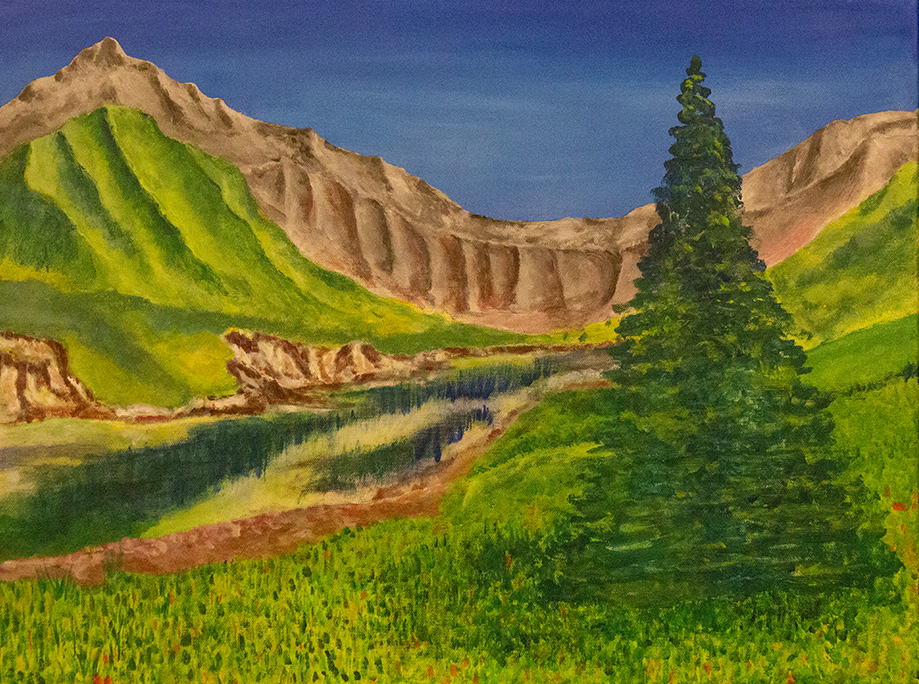 This painting is a continuation of my work in “My Sweet Butterfly.” It represents the setting of the story. I based this painting on a picture I took in 2006 in the Rocky mountains while I was backpacking with my wife and friends