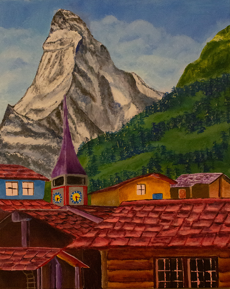 I’ve always had a passion for the mountains, and desire for the most iconic mountains in the world. The Mathehone or Servino, located on the border between Switzerland and Italy is one of those mountains. This painting shows an iconic view of the mountain from the town of Zermatt, using my color and my painting style.